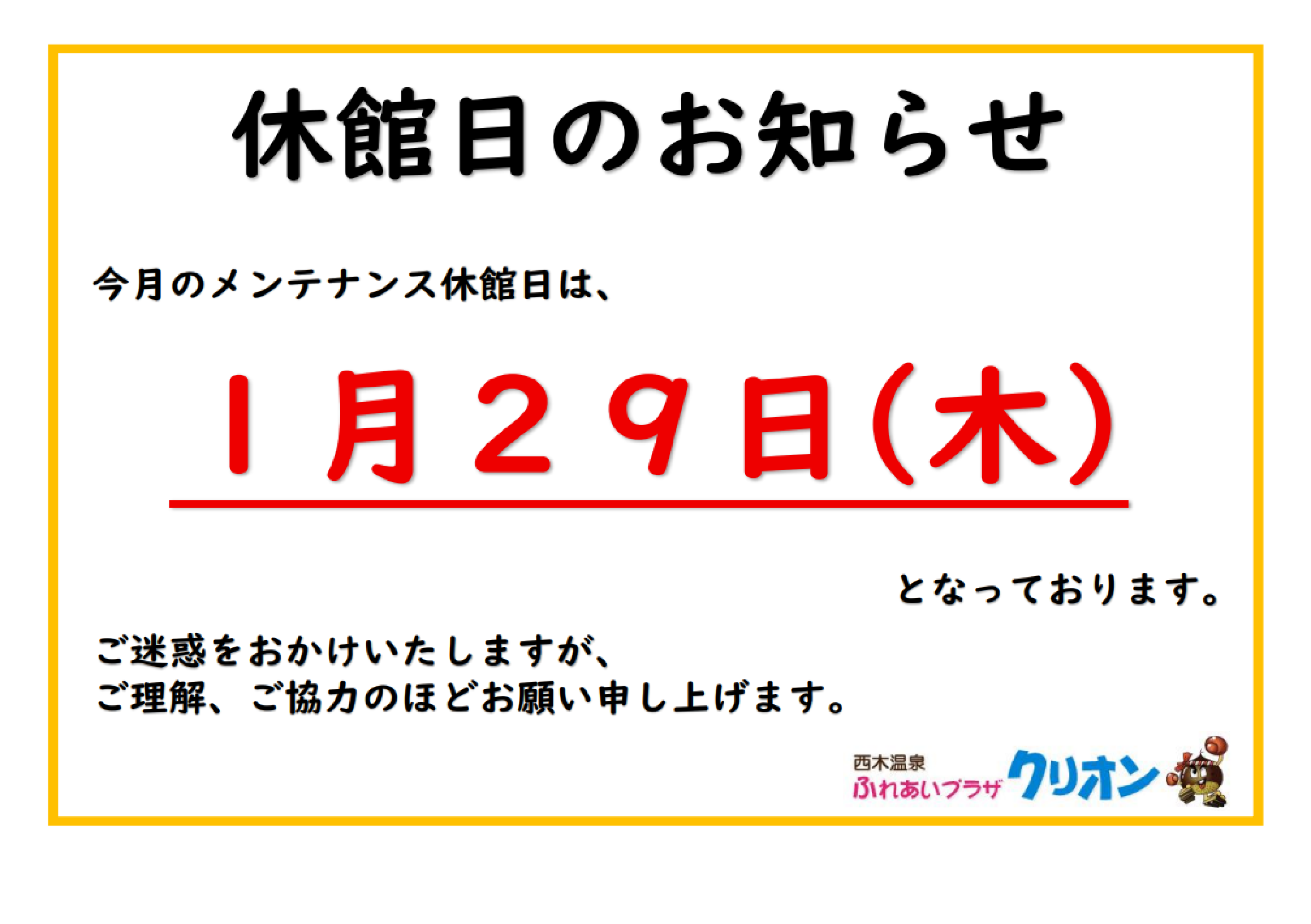 【休館日のお知らせ】
