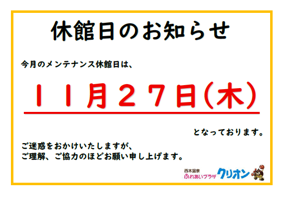 [お知らせ]休館日のお知らせ