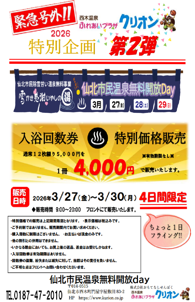 仙北市民温泉無料開放Day【入浴回数